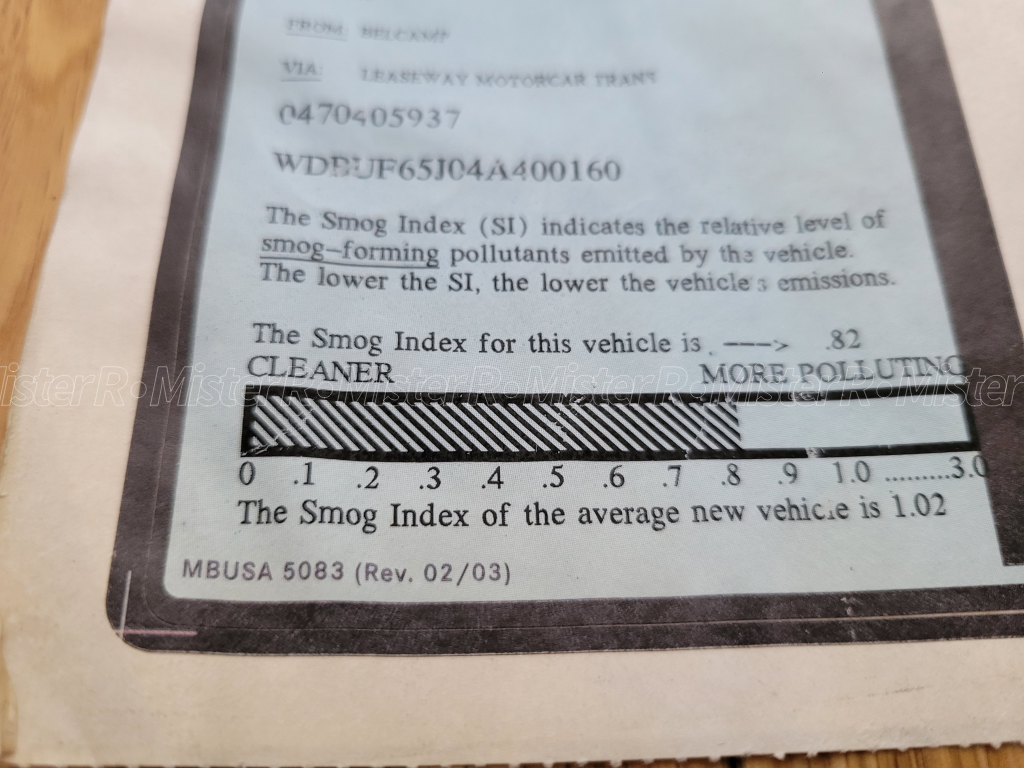 Offered for sale is an original Mercedes-Benz W211 E320W 2004 E-Class, vehicle sales window sticker. Features standard and optional equipment from a 744 Brilliant Silver sedan. This item shows various signs of wear, has been folded/creased, and has some areas that the adhesive has been unfortunately exposed. Priced accordingly and open to reasonable offers. This is a genuine dealer issued item that is sure to be a conversation piece and ideal to add to your Mercedes-Benz collection. Sold as-is and as shown. Please also review the actual photos of the item you will receive as this will be considered part of the description/condition.