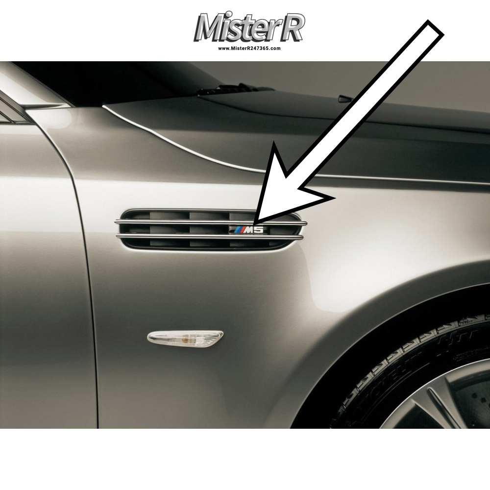 Offered for sale are original fender Grille Emblems for an E60 M5 Sedan or E61 M5 Touring Wagon. The emblems are suitable for either side, Driver/Left or Passenger/Right of the vehicle. Genuine, new, original equipment parts direct from BMW. Please also review reference photos of the item you will receive.