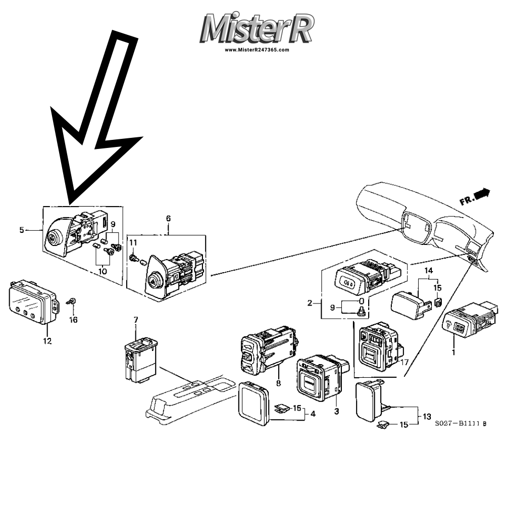 Pre-owned Defroster Button/Switch with Trim. This part is an OE Japanese part from a RHD vehicle. Button and trim piece are in great shape for its age, 8/10 condition. Original and genuine JDM items from Honda, imported stateside by Mister R.