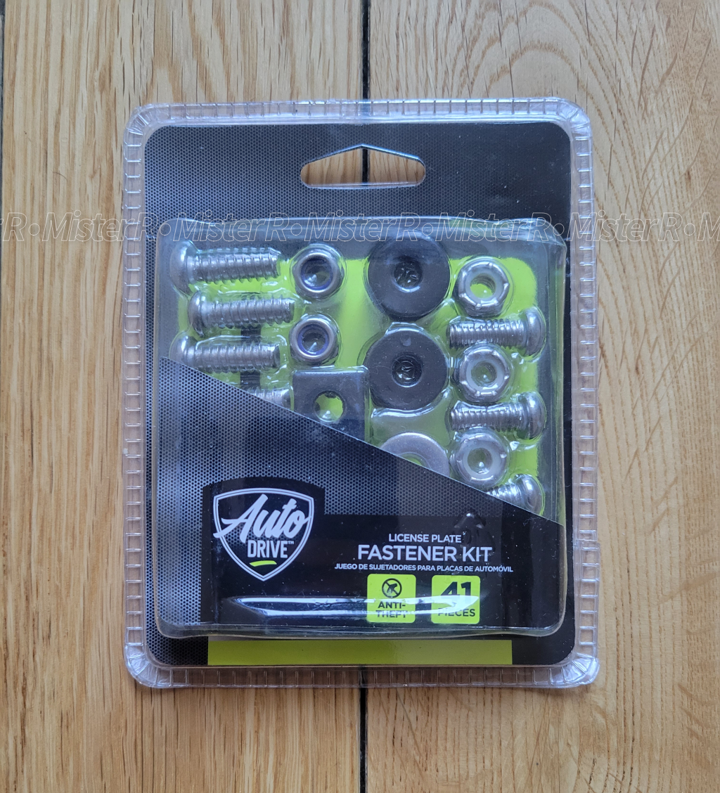 Offered for sale are license plate fastener kits for standard US spec license plates and plate frames. These 41-piece mounting kits include twelve (12) theft deterrent stainless steel screws, eight (8) nuts, four (4) nylon inserts, four (4) nylon spacers, four (4) lock washers, four (8) standard washers and one (1) theft deterrent allen/hexagon wrench to securely mount your plate and frame to your vehicle.