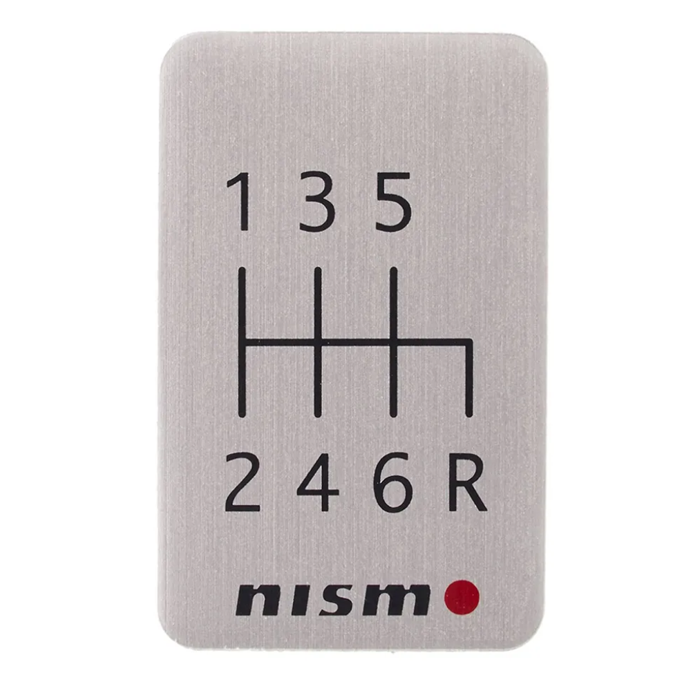 NISMO Aluminum 6-Speed Shift Pattern Emblem. Self adhering badge ready to add sporting heritage as a great OEM+ detail touch to the interior of your build. Genuine, NISMO item, products from Japan.