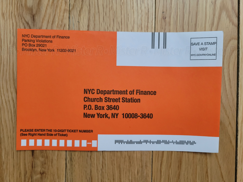 NYC Orange Parking Ticket Envelope - New York City Traffic Summons/Violation - NYPD