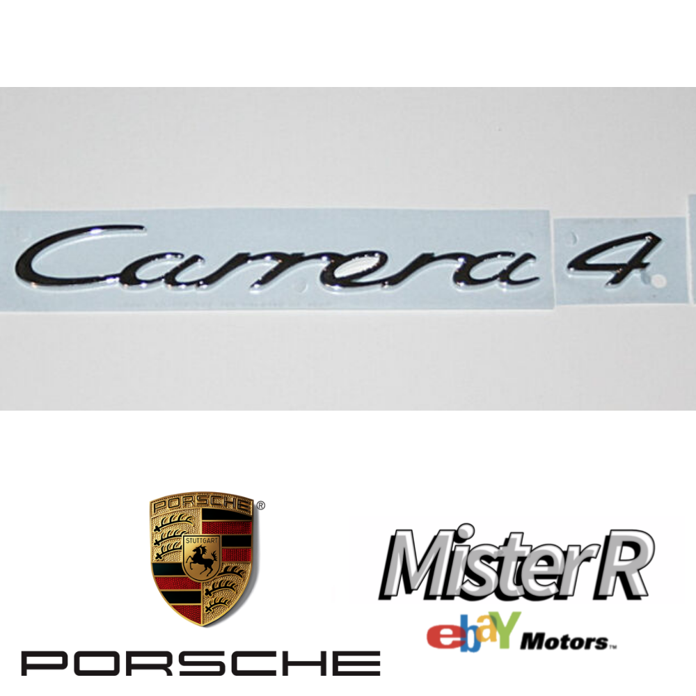 Porsche 911 Carrera 4 Rear Emblem in Chrome for a 991. Genuine, new OE Porsche parts, #14 and #17 on the provided diagram. Please cross reference fitment & review reference photos of the item you will receive.