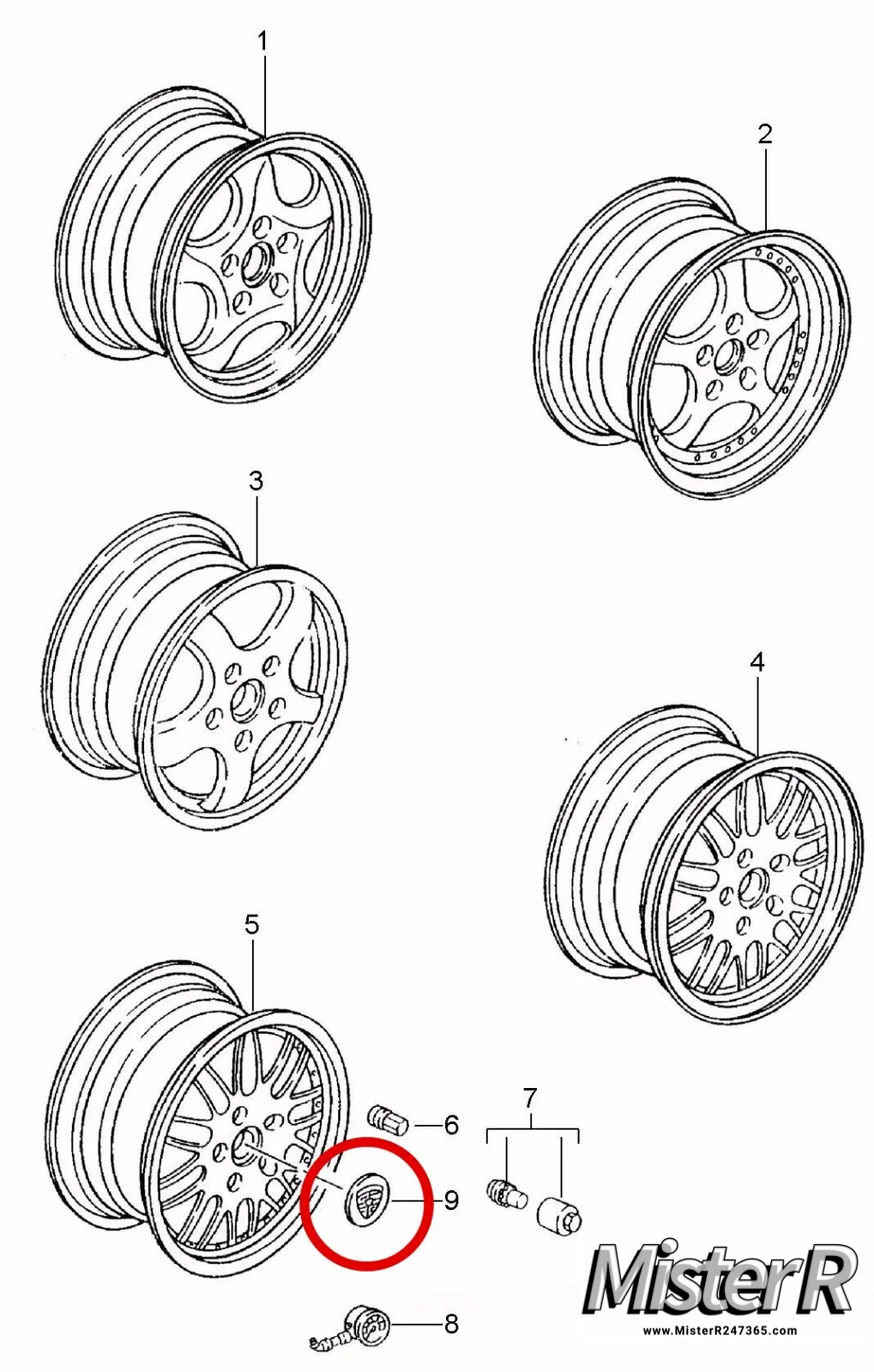 Porsche - Black Crest Center Cap - 911 912 930 944 - OEM #91136103228