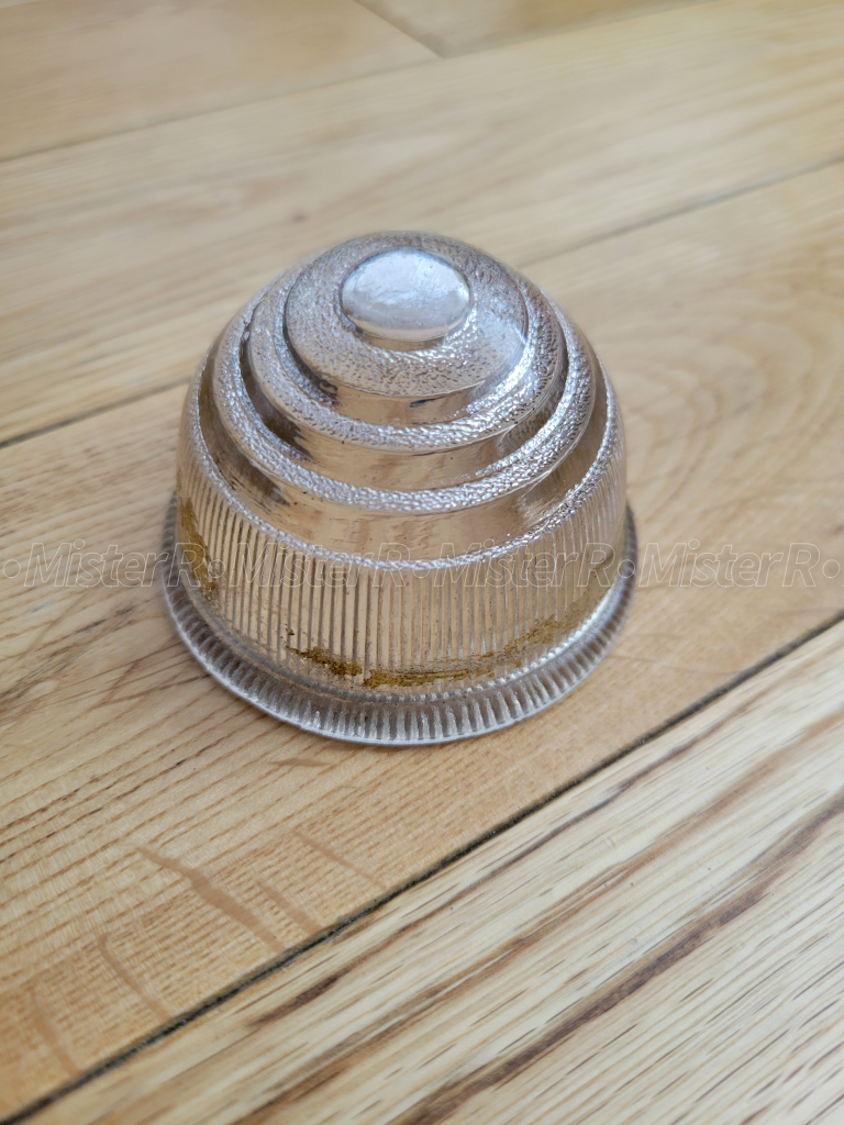 Offered for sale is a Renault Dauphine Turn Signal/Indicator Lamp Housing made of clear glass. This part is round and conical in shape. It also fits both Left/Driver and Right/Passenger sides of the vehicle. Note that some model variants were equipped with rectangular shaped lamps and/or round orange/amber colored lamps.